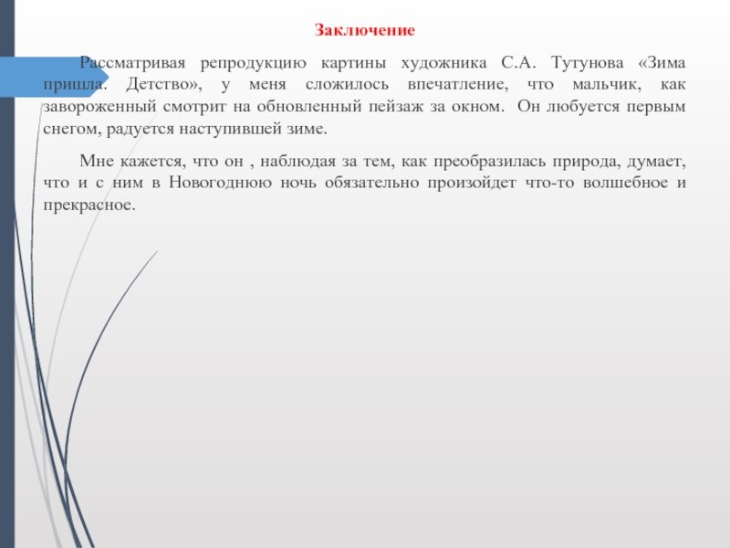 Сочинение Тутунова зима пришла детство