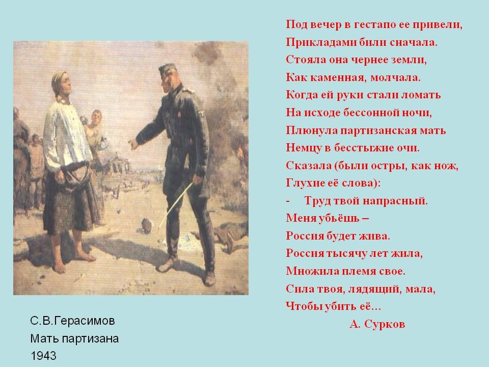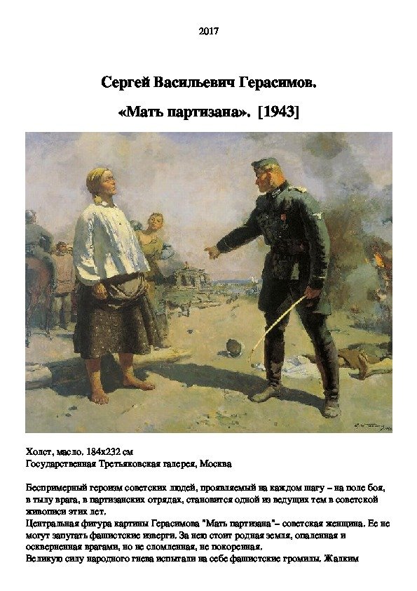 Мать Партизана, с. в. Герасимов (1943-1950)