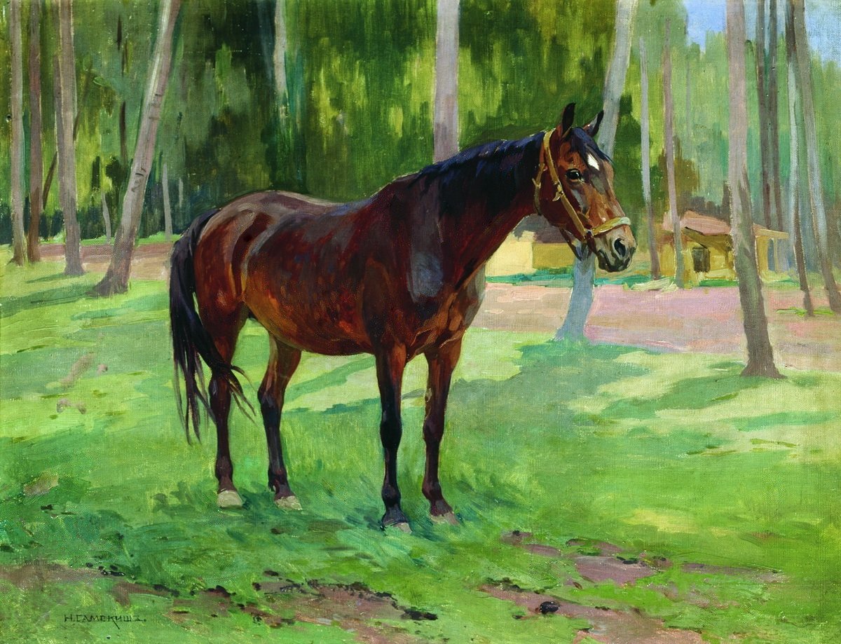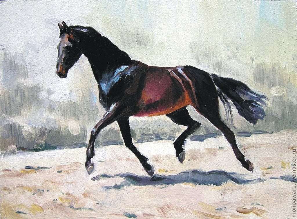 Сатаров Михаил художник картинылошадь на водопе на речке