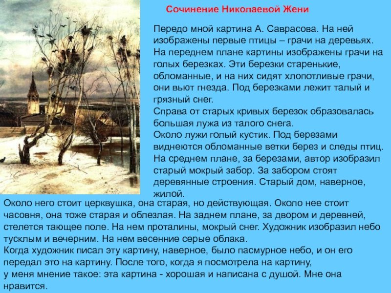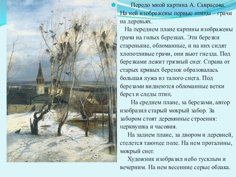 А К Саврасов Грачи прилетели рассказ