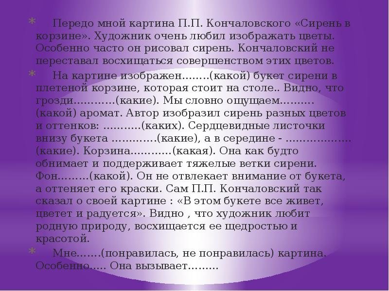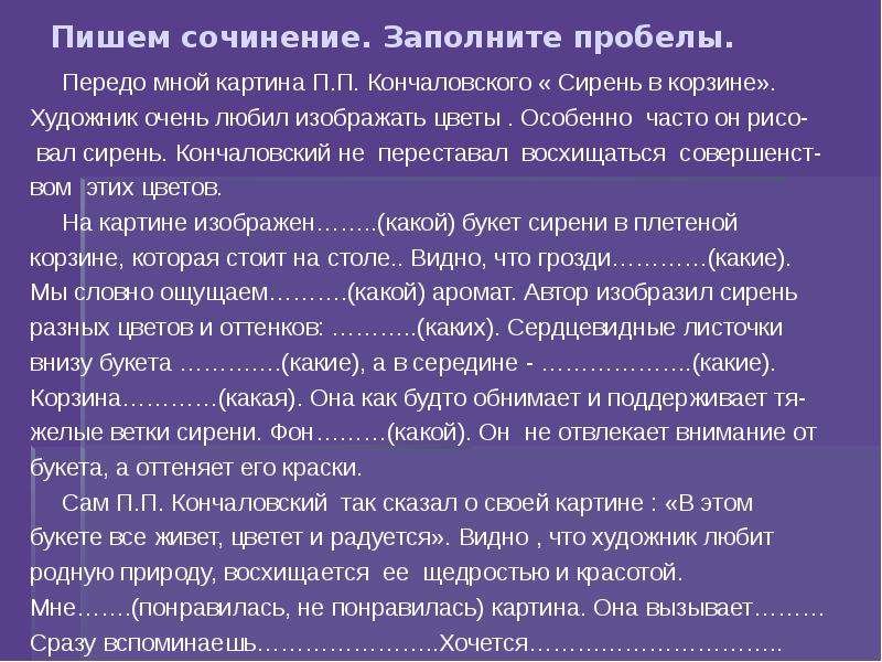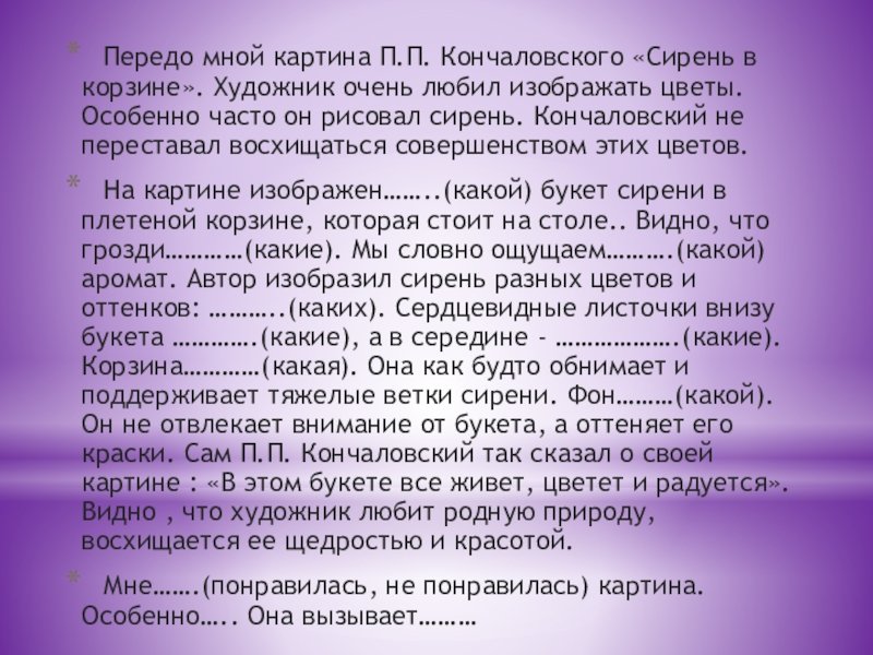 Сочинение по картине Кончаловского сирень в корзине