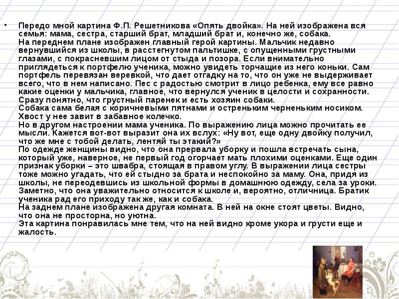 Сочинение ф п Решетников по картине опять двойка 5 класс
