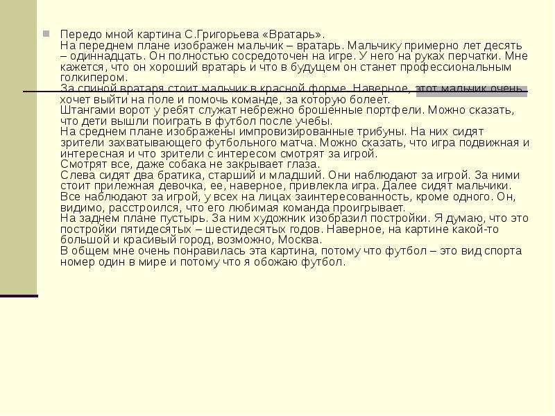 Сочинение рассказ на тему картина с Григорьева вратарь