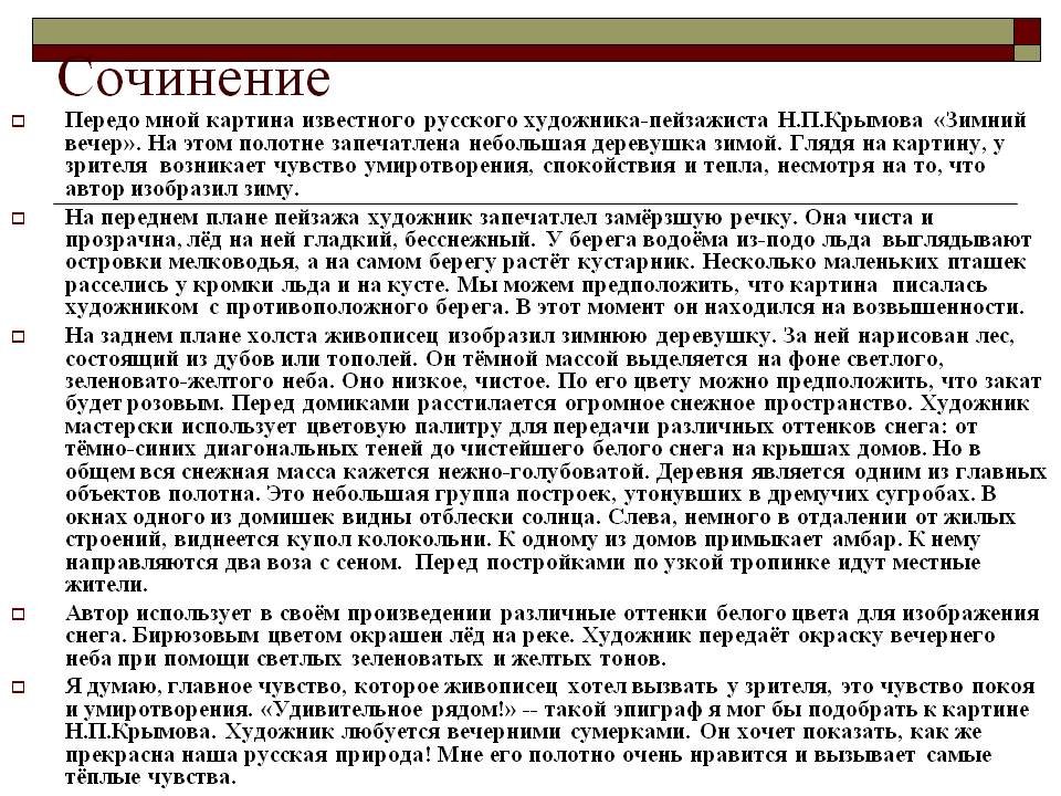 Картина н Крымова зимний вечер сочинение
