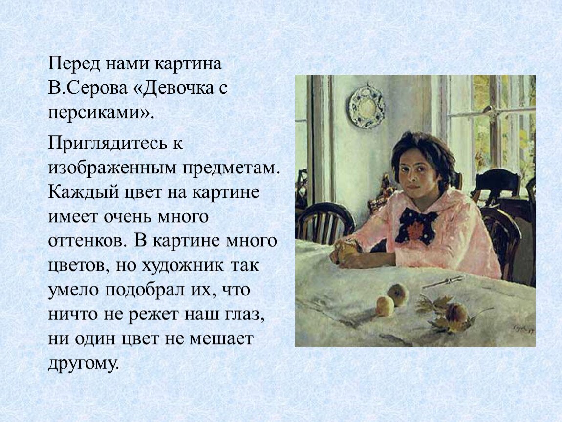 Картина девочка с персиками в.а.Серов описание