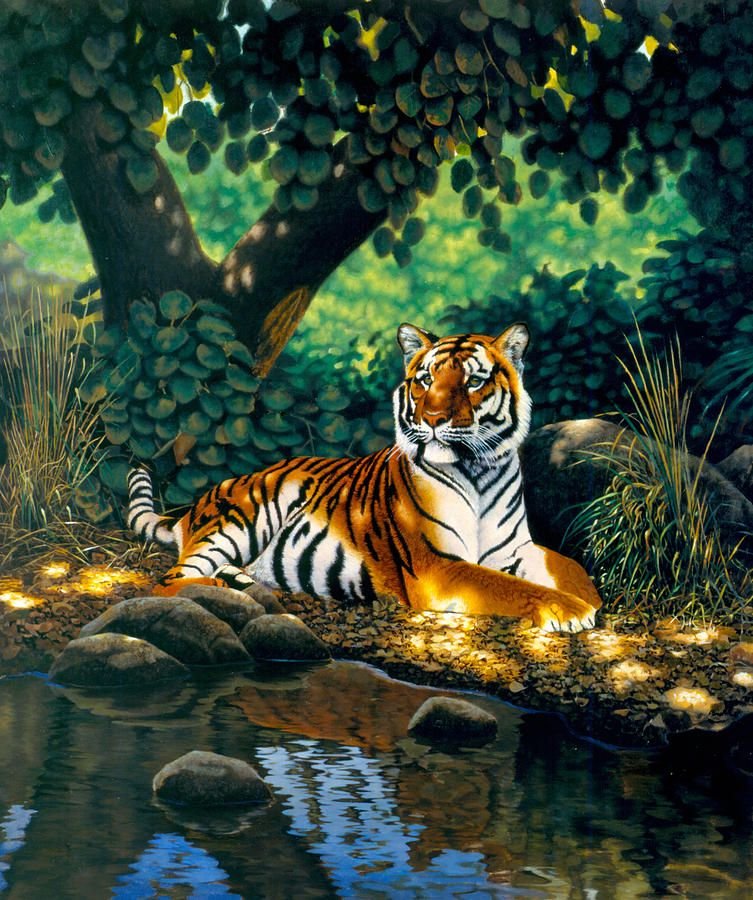 Тигр - это картина, которая привлекает внимание своей мощной и грациозной красотой. Величественный тигр, изображенный на этой картине, словно оживает перед нами, позволяя нам почувствовать его силу и энергию. Каждая деталь этой картины выполнена с таким мастерством, что мы можем увидеть каждую полоску на его шкуре и каждый мускул на его теле. Картина Тигр станет прекрасным украшением для любого интерьера и будет напоминать о дикой природе, которая всегда привлекает нас своей загадочностью и прекрасной гармонией.