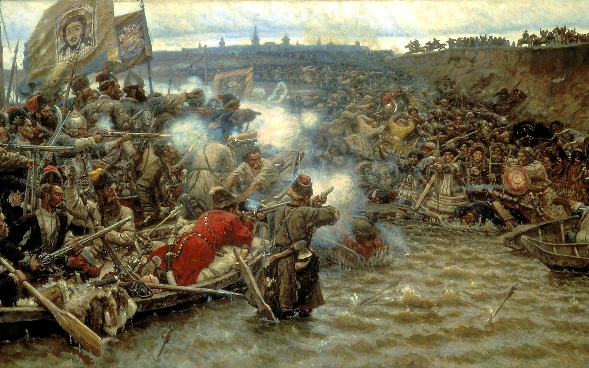 "Покорение Сибири Ермаком". В.И.Суриков. 1895 Год.