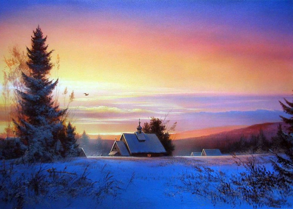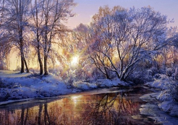 Художник Юшкевич Виктор Николаевич зимний пейзаж картины