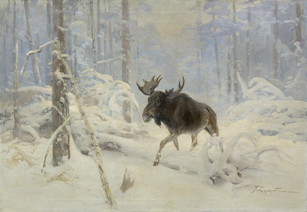 Василевский Чеслав Лось в зимнем лесу