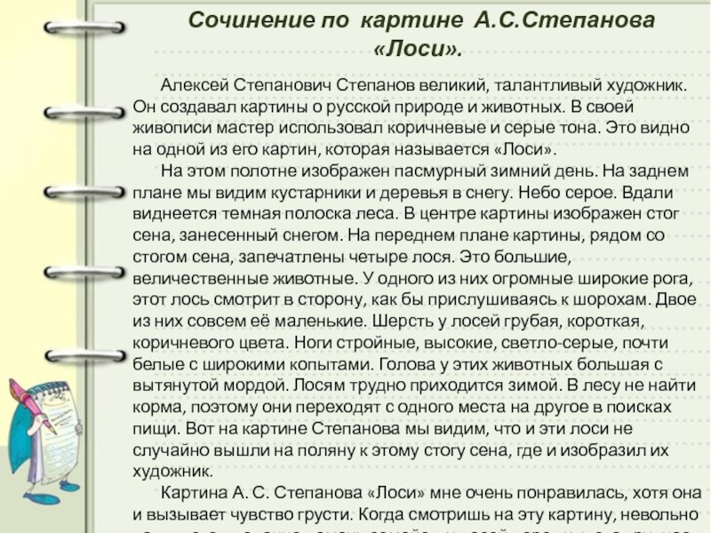 А С Степанов лоси сочинение 2 класс по картине