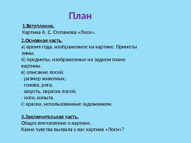 Сочинение по картине лоси 2 класс школа России план