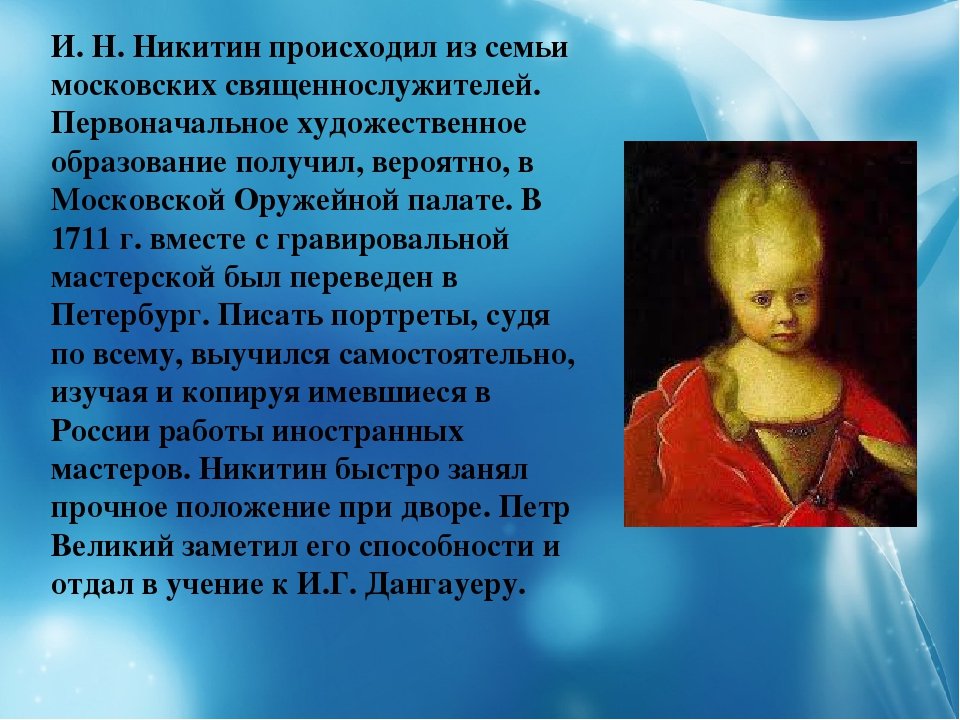 Иван Никитич Никитин (1680 —1742) — «Персонных дел мастер»