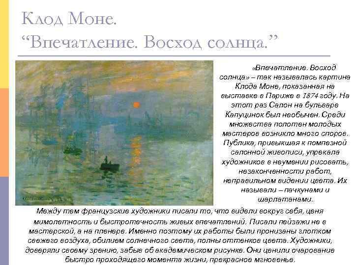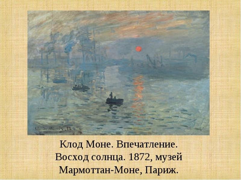 Моне Клод впечатление, Восход солнца. 1873. 48x63, музей Мармоттан, Париж