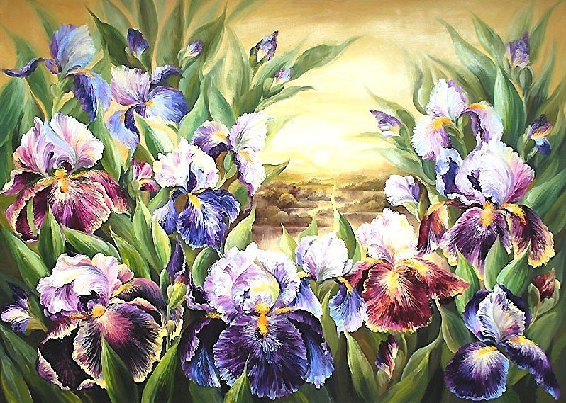 Живопись маслом цветы ирисы