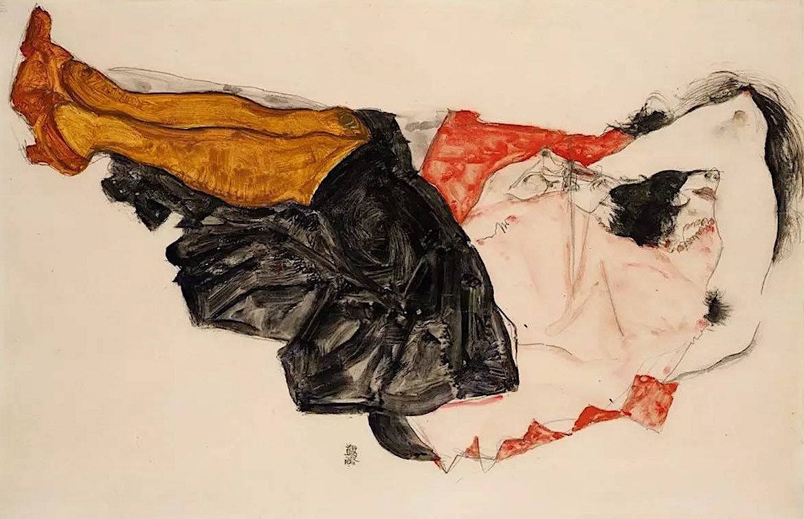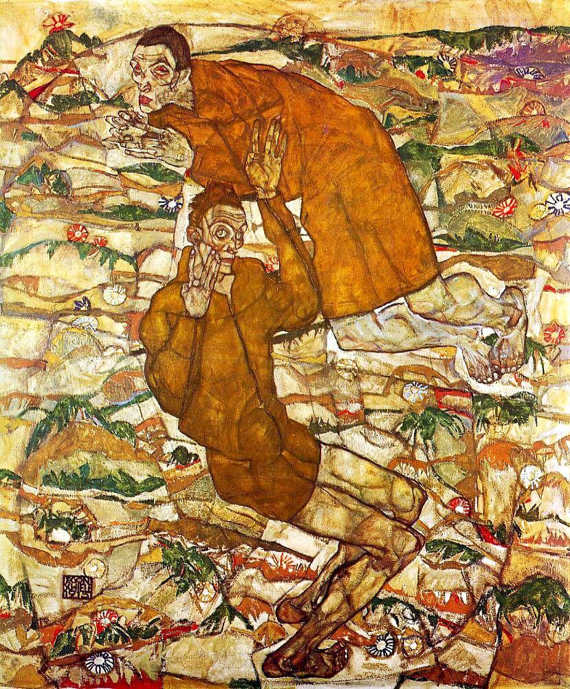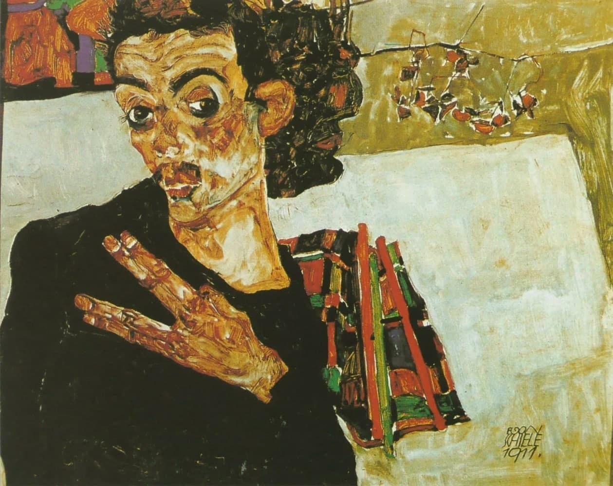 Эгон Шиле "автопортрет с павлиньим жилетом", 1911