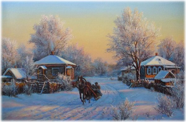 Зима в деревне живопись