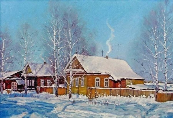 Художник Олег Пятин зима в деревне