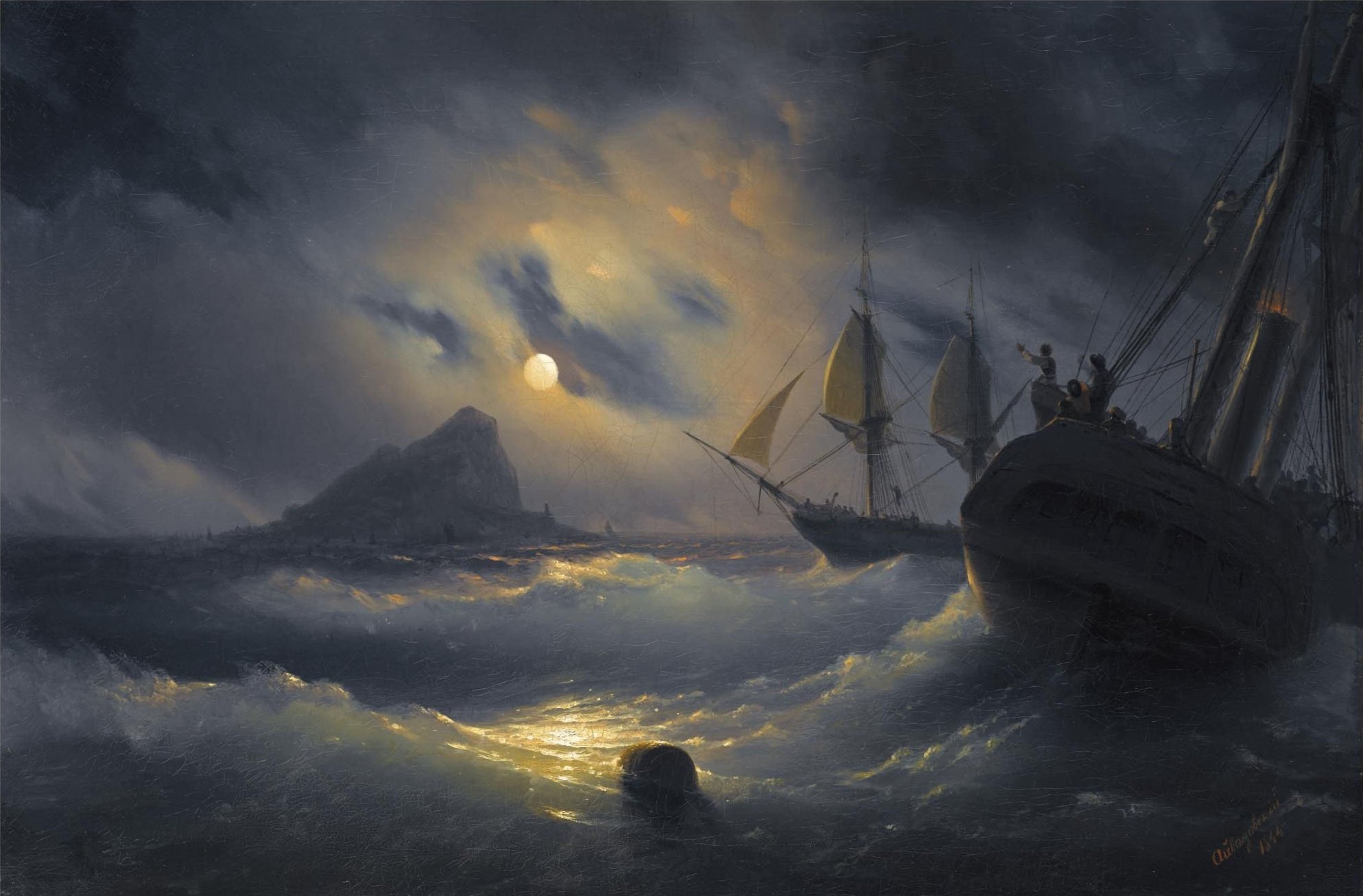 Айвазовский Гибралтар ночью 1844