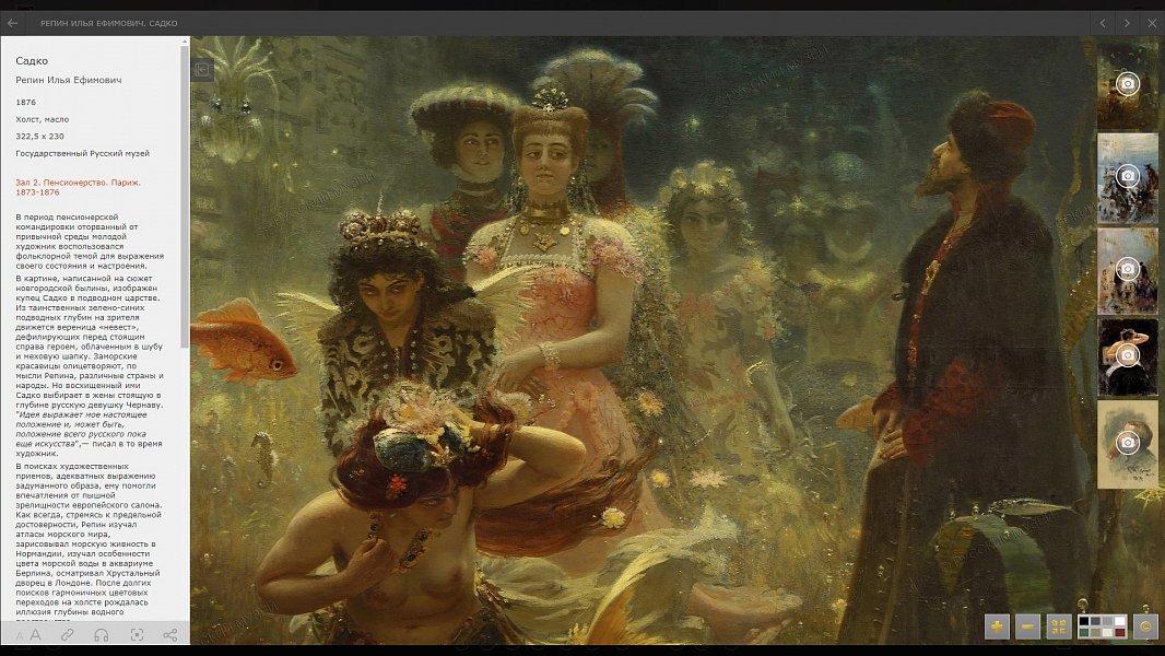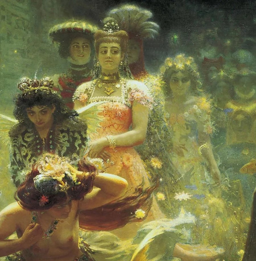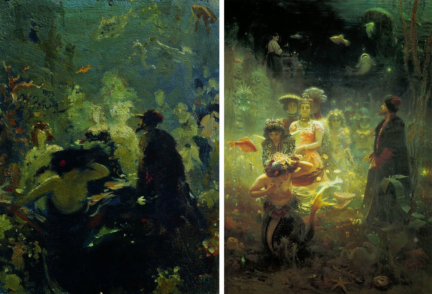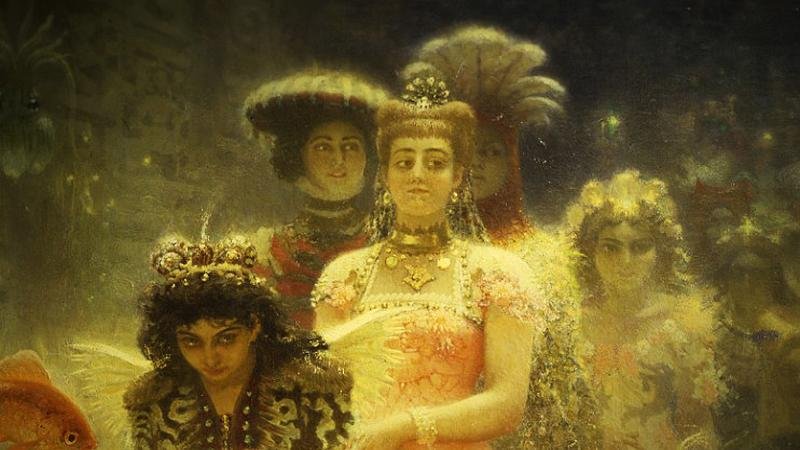«Садко» - это знаменитая картина русского художника Ильи Ефимовича Репина. На этой полотне изображена сцена из народной легенды о Садко, молодом русском гусляре, который способен очаровывать своей музыкой не только людей, но и подводных жителей. Картина воссоздает яркий и динамичный момент, когда Садко играет на гуслях, окруженный большой толпой народу и морских обитателей. Это произведение отличается богатством деталей, проникновенными выразительными лицами персонажей и величественной композицией. «Садко» - это настоящий шедевр, который запечатлел сказочную атмосферу древней русской легенды и является одним из самых известных произведений Репина.