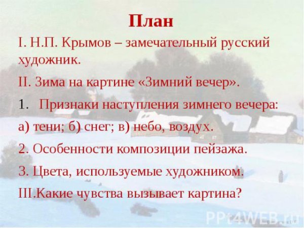 Сочинение по картине н Крымова зимний вечер 6 класс