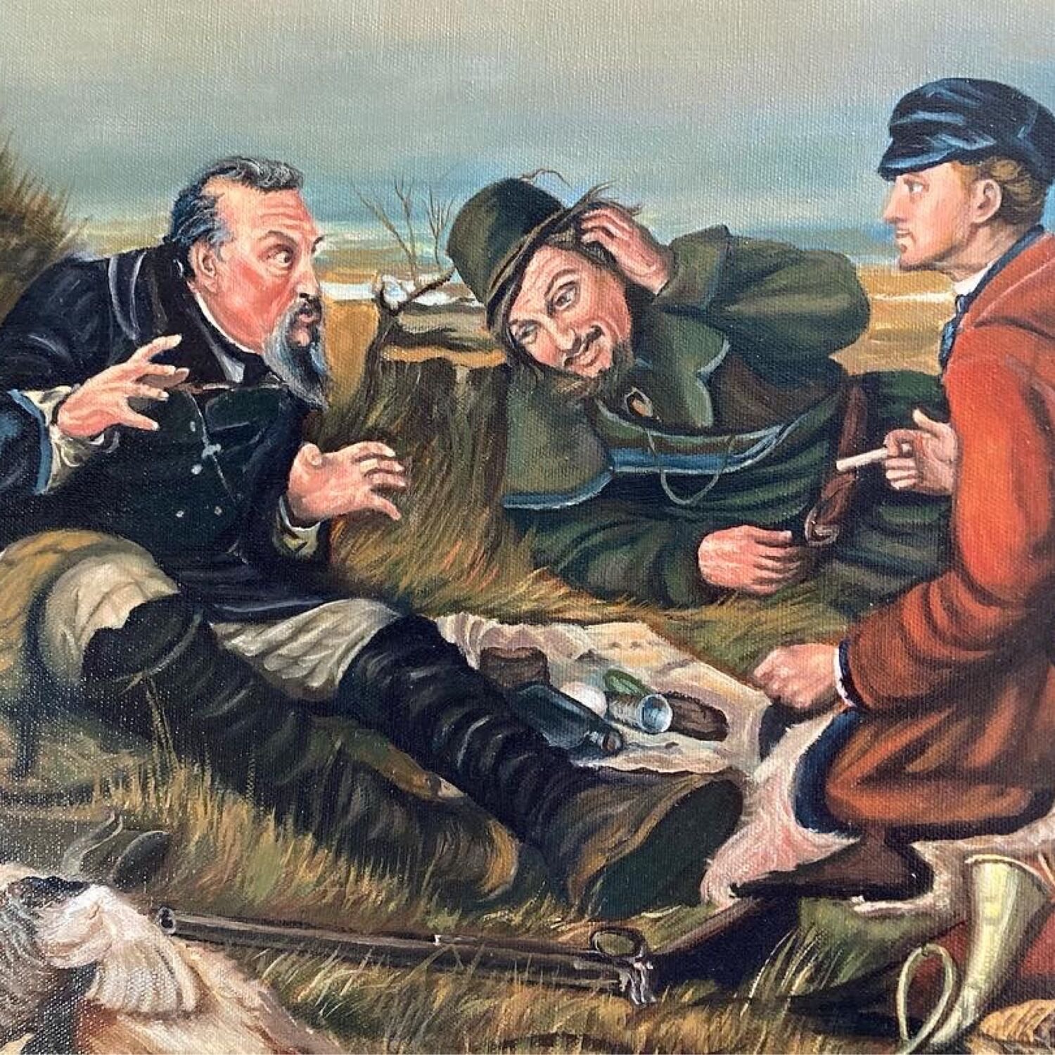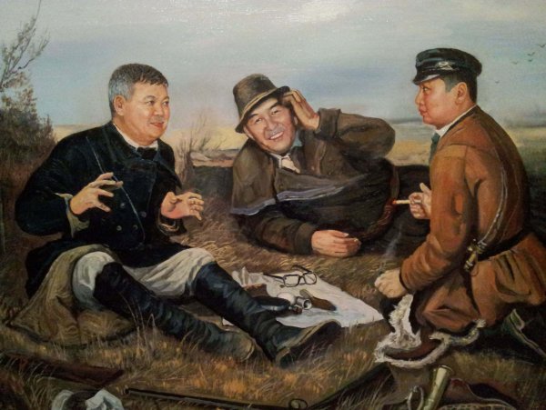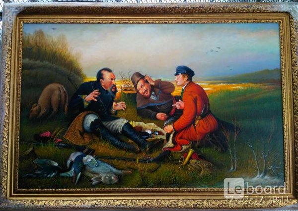 Картина маслом охотники на привале Перов