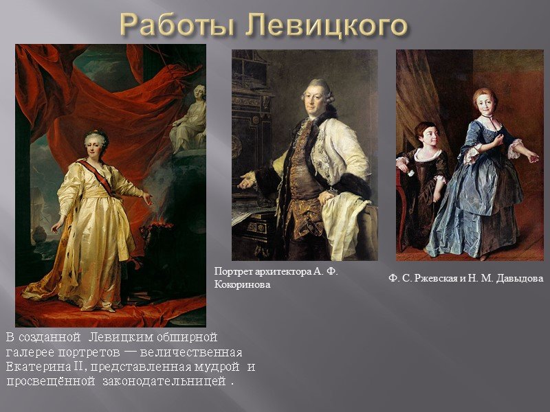 Левицкий – известный русский художник XVIII века, чьи картины являются настоящими произведениями искусства. Его творчество отличается уникальным стилем и выразительностью, что делает его работы непременно привлекательными для ценителей и любителей искусства. Картины Левицкого отличаются яркой палитрой, тщательно проработанными деталями и глубоким содержанием. Он был мастером портрета и создавал образы выдающихся личностей своего времени. Его полотна передают не только внешнюю схожесть с изображаемыми, но и их внутренний мир, эмоции и характер. Картины Левицкого – это незабываемое путешествие в историю и культуру России XVIII века, а также возможность окунуться в мир прекрасного и уникального искусства.