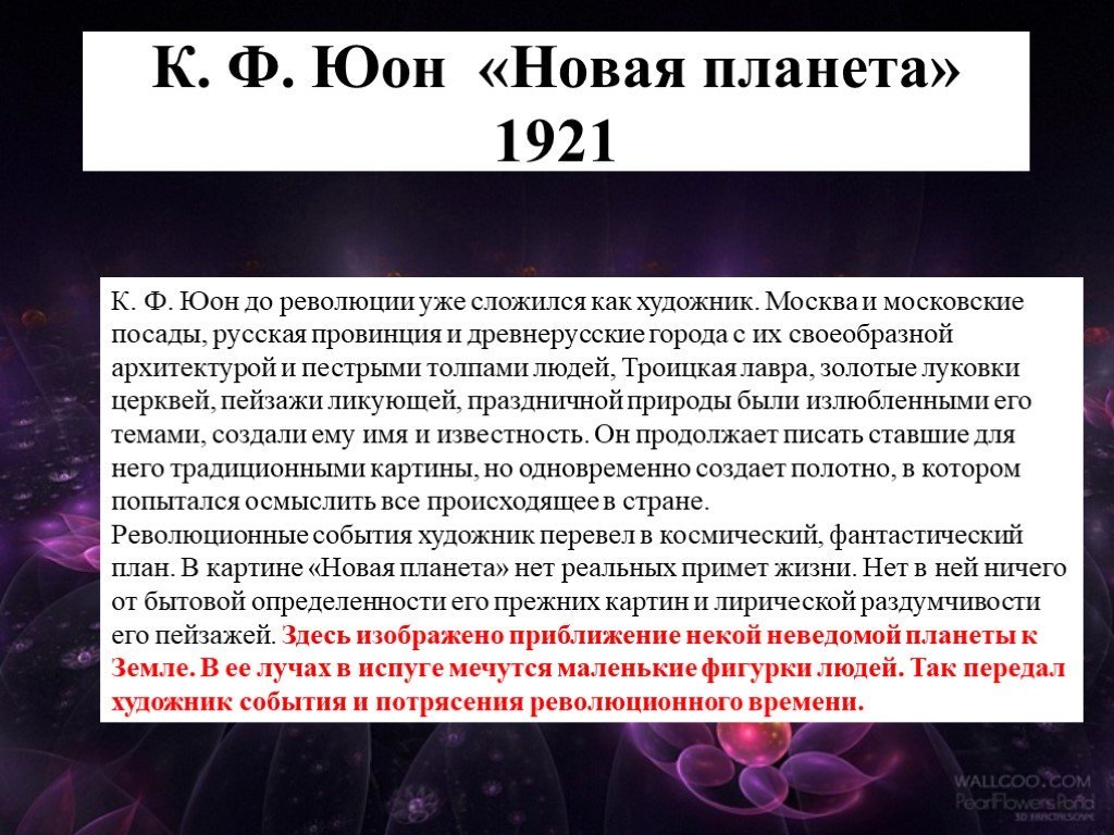 Описание картины новая Планета к.Юон 8 класс