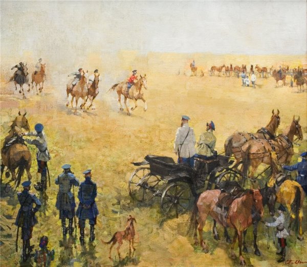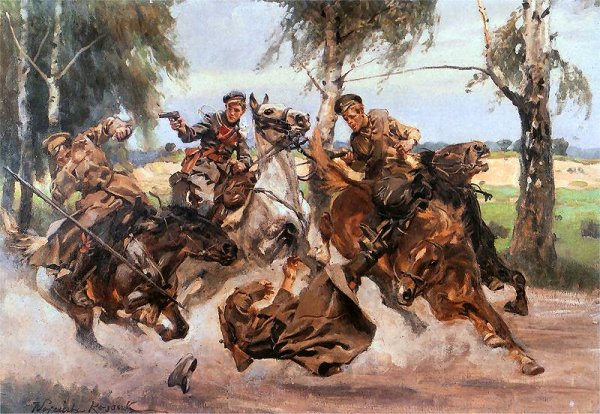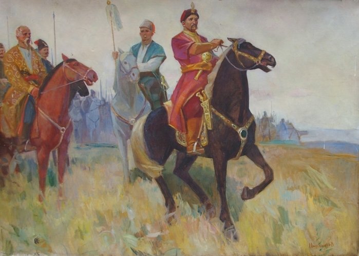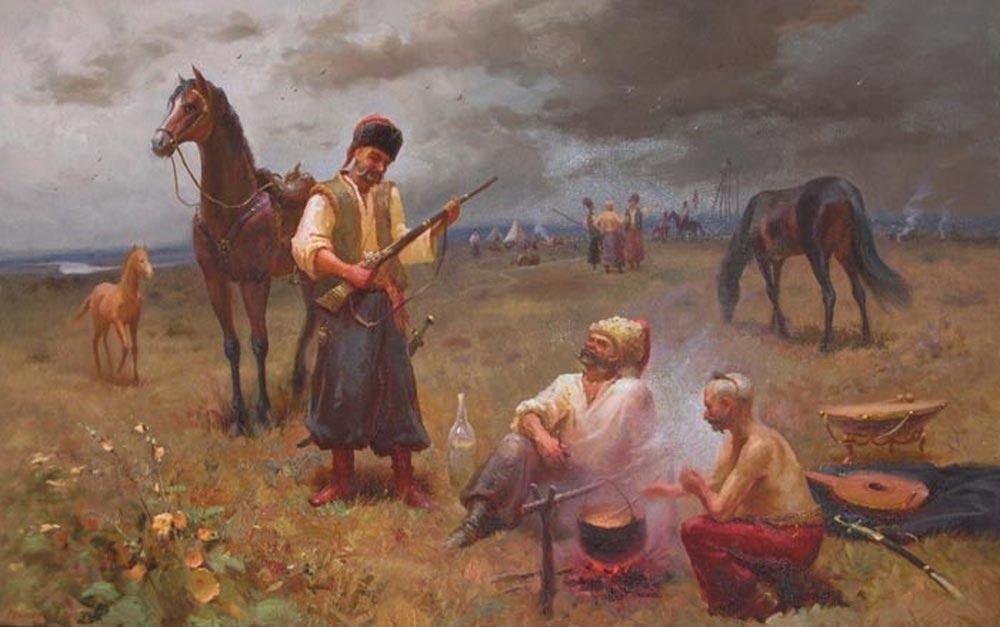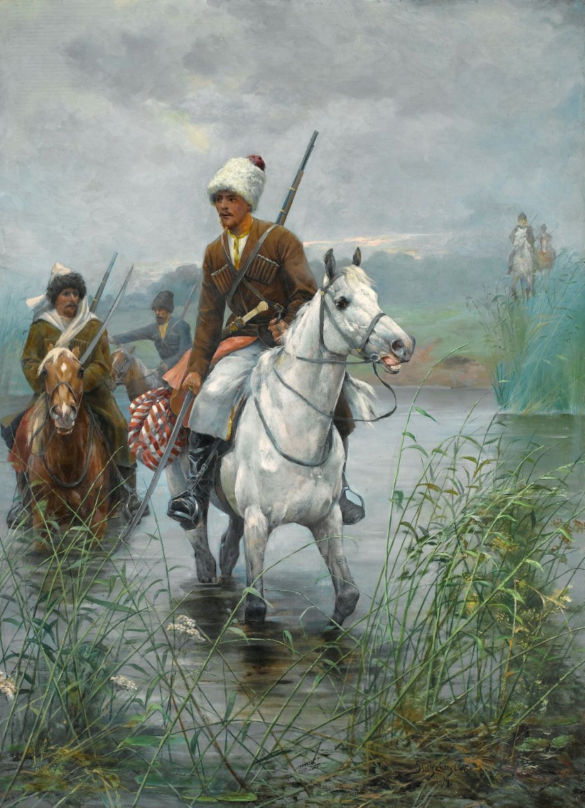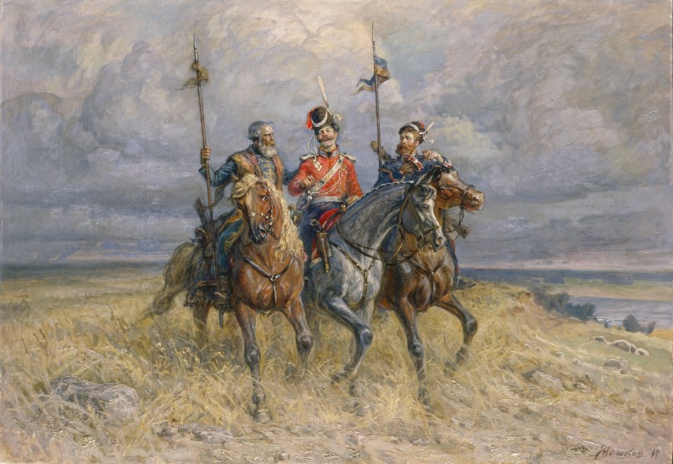 "Картина "Казаки" - это произведение искусства, которое погружает зрителя в атмосферу старой Русской империи. На этой картины художник передает мощь и силу казачества через яркие краски и глубокие контрасты. Он показывает нам жизнь и борьбу казаков на фоне просторных степей и дремучих лесов. Каждый деталь и персонаж на картины передают эпический дух и гордость русских казаков, и они заставляют нас задуматься о их роли в истории нашей страны. Это истинное творение искусства, которое не только привлекает взгляд, но и заставляет задуматься о нашем прошлом и значении казачества в наше время."