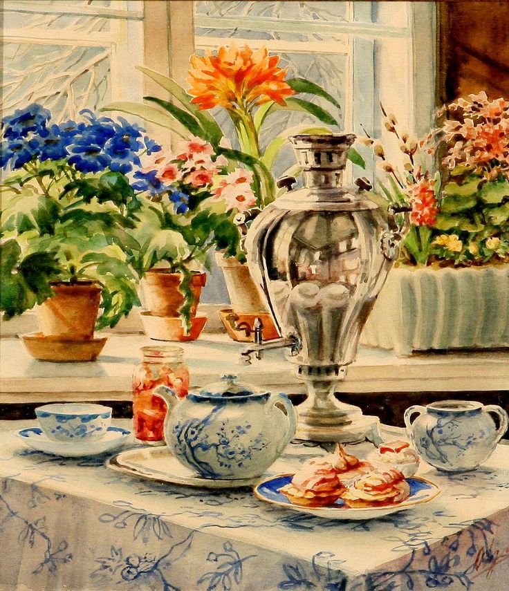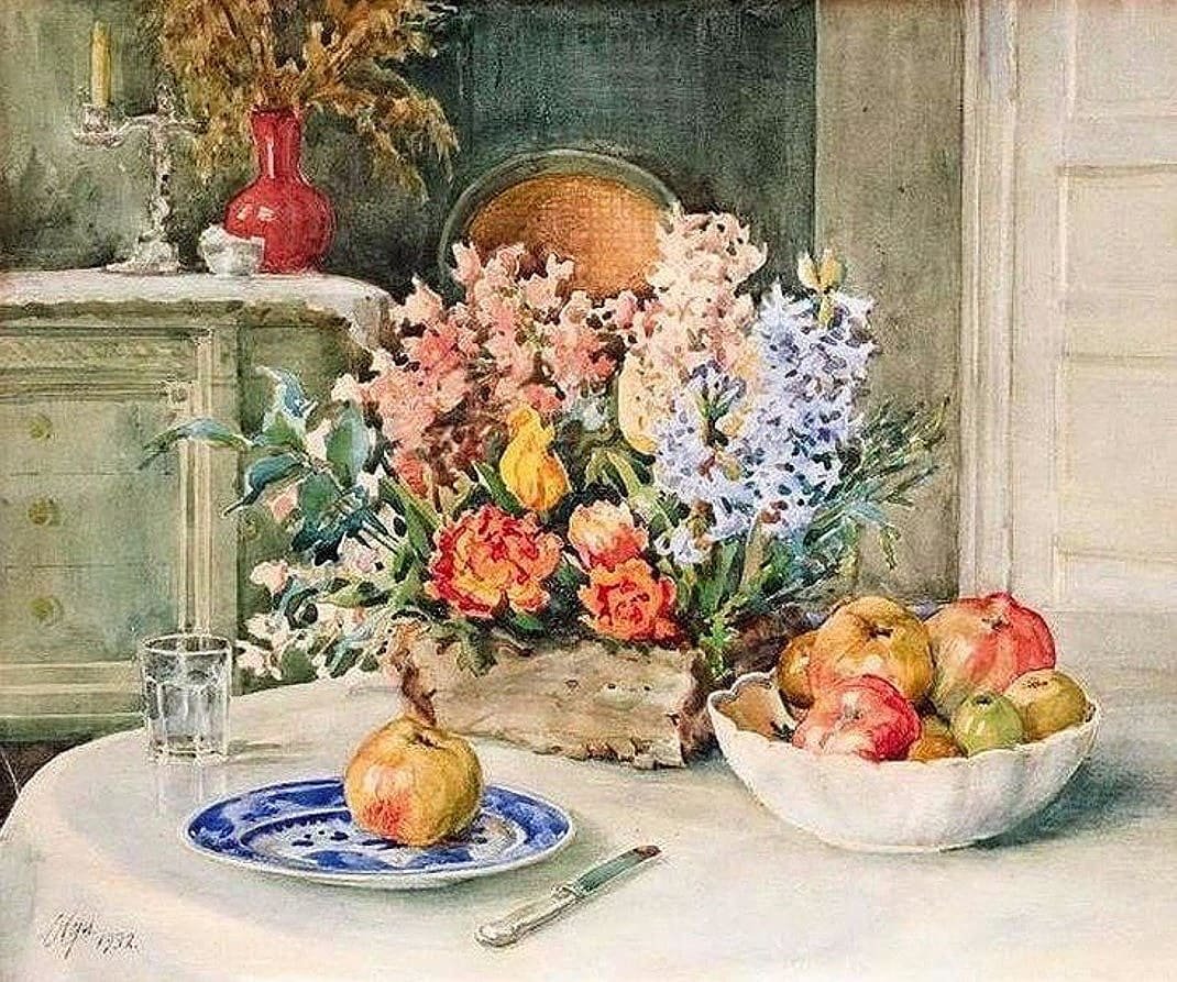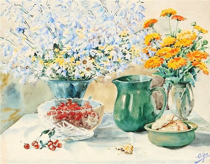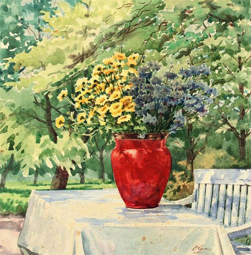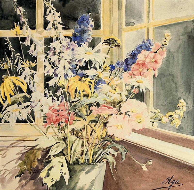 Цветочная акварели Великой княгини Ольги Александровны Романовой.