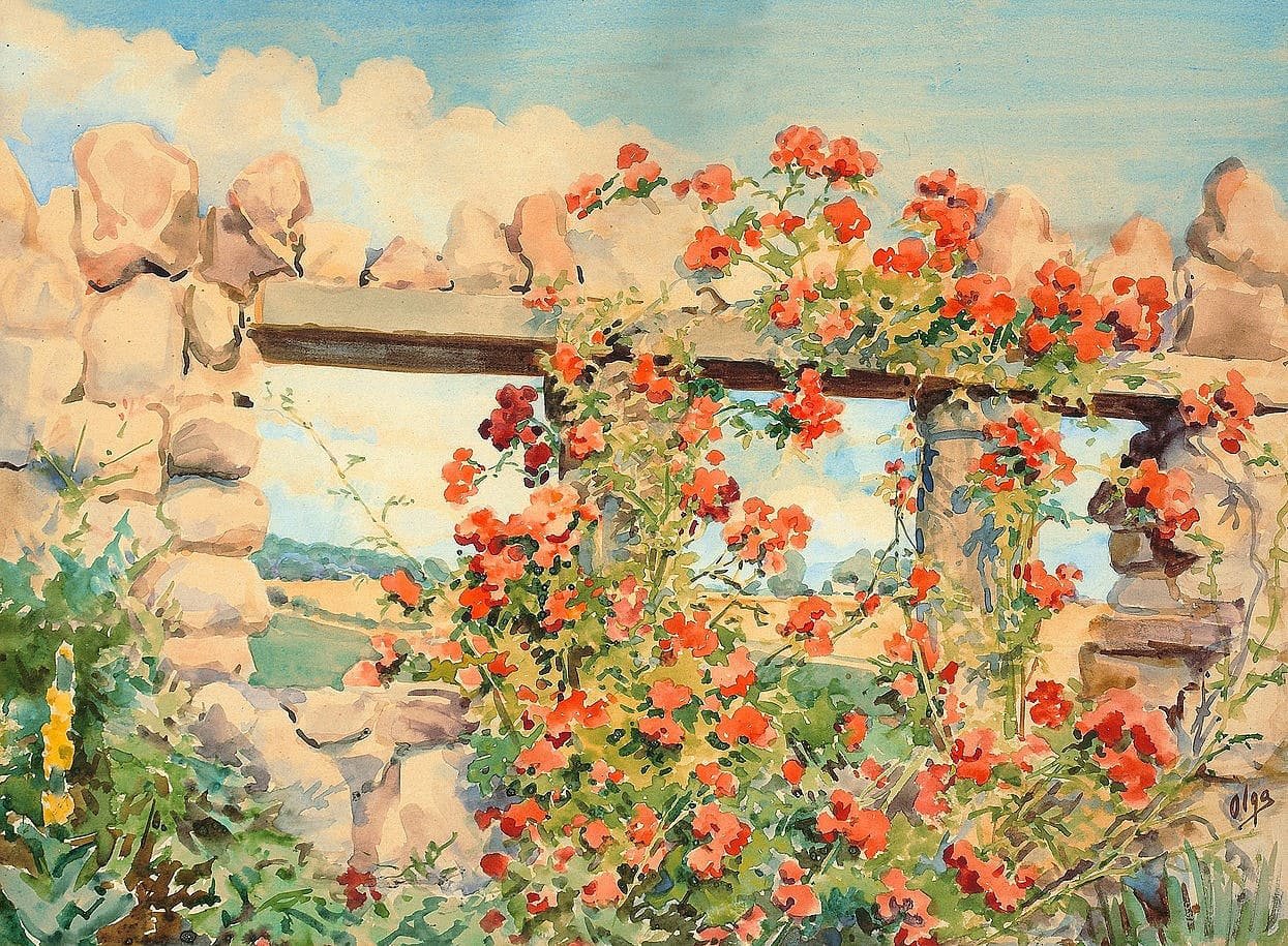 Картины Великой княгини Ольги Александровны Романовой акварель