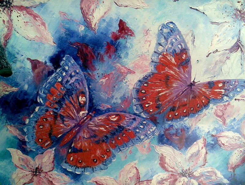 Бабочки маслом на холсте