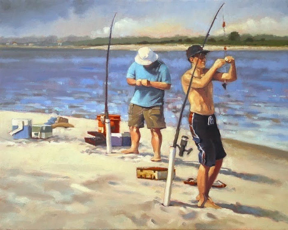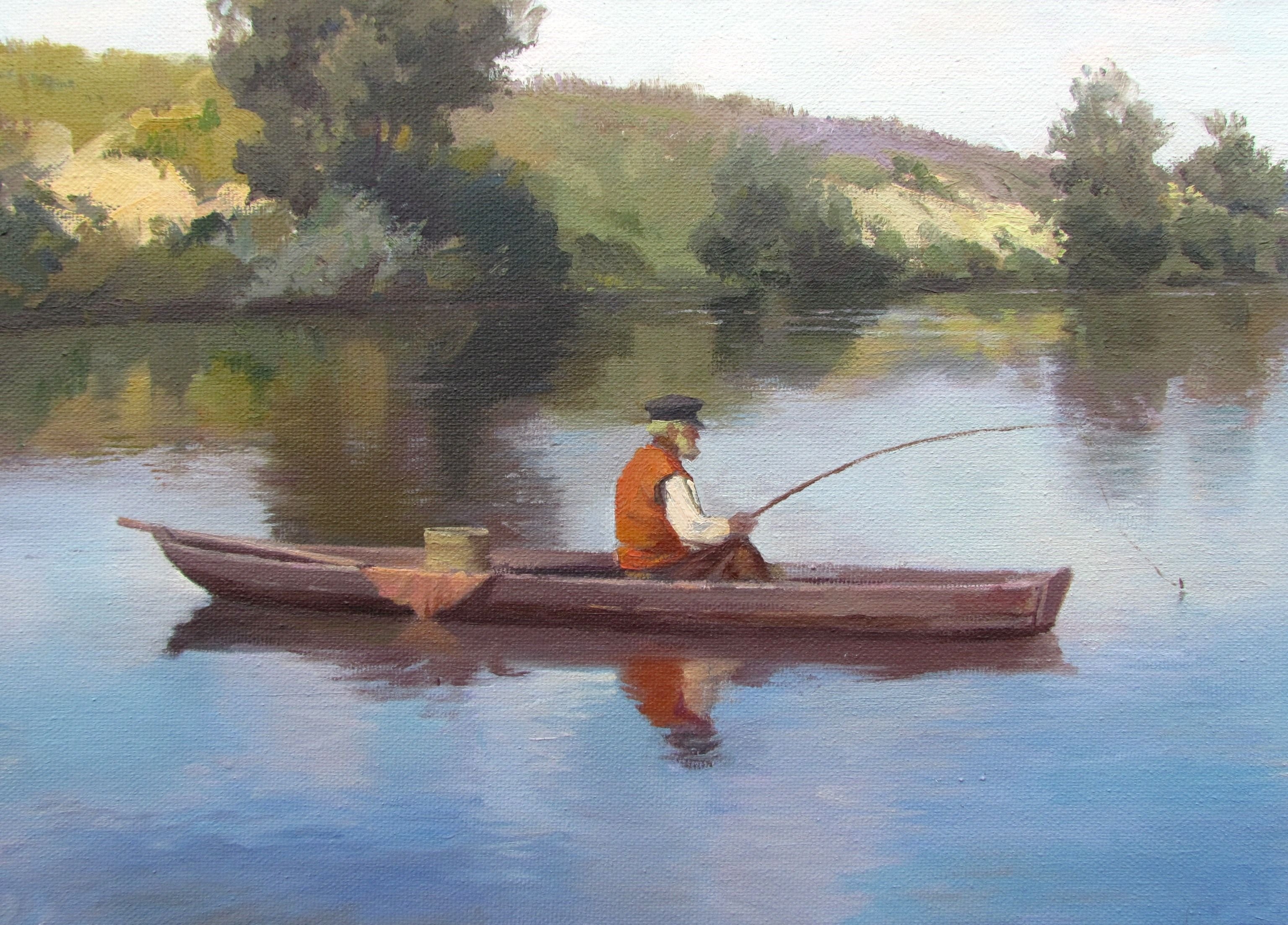 Картина "Рыбак" - это произведение искусства, которое захватывает зрителя своей яркой и живописной композицией. На этой картине изображен рыбак, погруженный в свою работу на берегу озера или моря. Он стоит удочкой в руках, готовый поймать свою следующую добычу. Вокруг него раскинулась красивая природа - зеленые поля, синее небо и прозрачная вода. Картина передает атмосферу спокойствия и умиротворения, а также отражает человеческую связь с природой и ее бесконечными тайнами. Это произведение искусства непременно вызывает интерес и эмоции у зрителя, заставляя задуматься о значении и ценности окружающего мира.