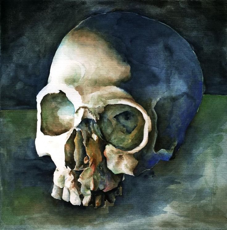 Череп акварелью
