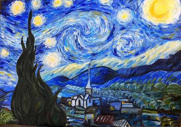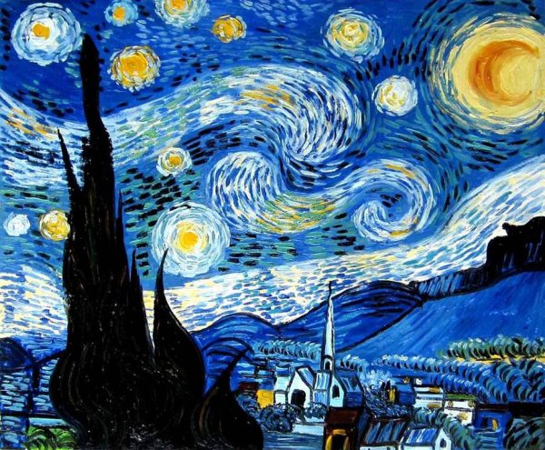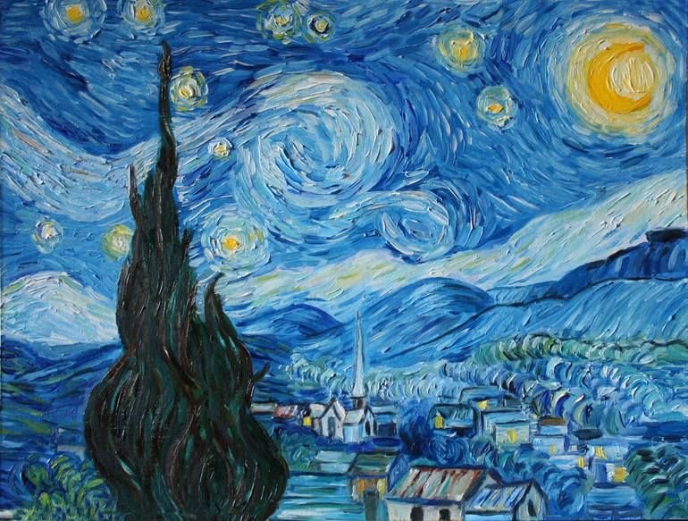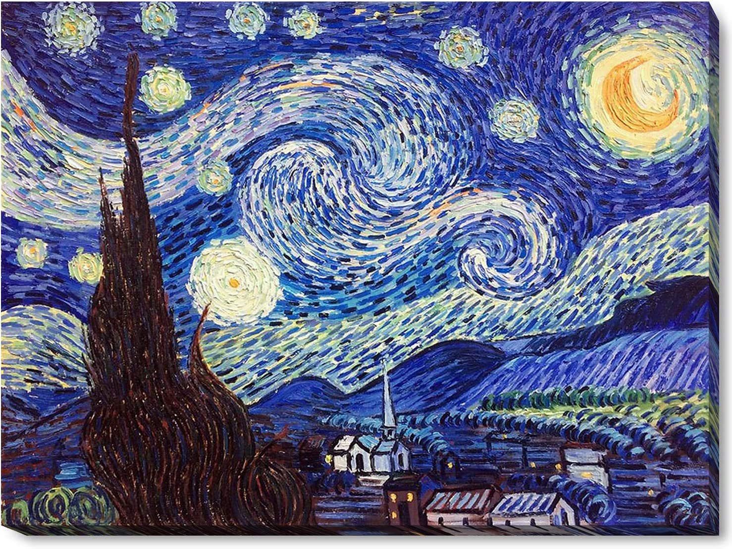 "Звездное небо" - одна из самых знаменитых картин великого художника Винсента Ван Гога. Это произведение искусства, созданное в 1889 году, привлекает внимание своей уникальной эмоциональной силой и экспрессией. На картины мы видим ночное небо, переполненное яркими звездами, которые словно танцуют на фоне темных контуров горизонта. Художник использовал мощные кистевые штрихи, чтобы передать свою страсть к природе и ее безграничной красоте. "Звездное небо" является не только образом природы, но и отражением внутреннего мира самого Ван Гога, который стремился выразить свои эмоции и чувства через свои картины. Это произведение искусства стало символом гениальности и таланта художника, а его уникальный стиль оставил неизгладимый след в истории живописи.