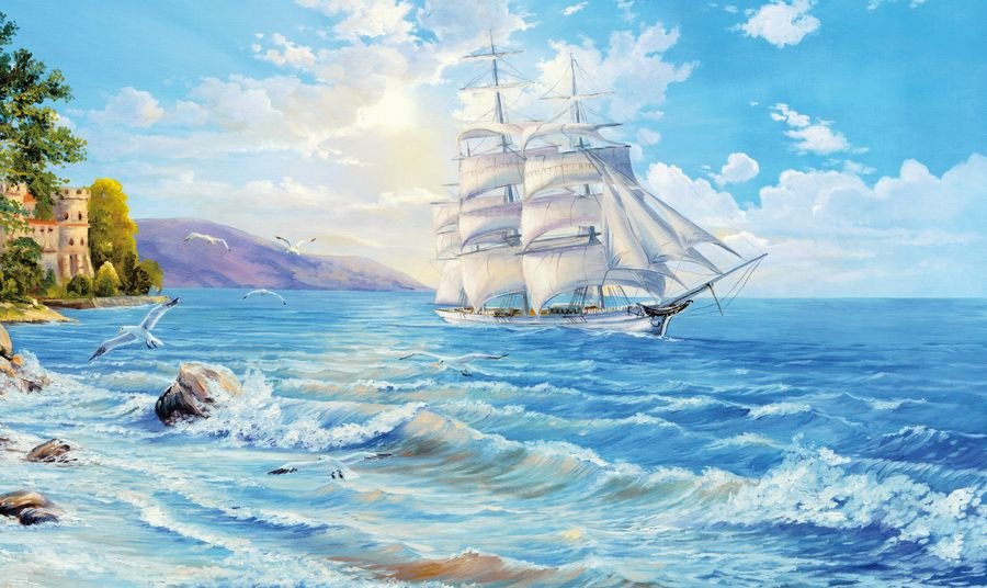 Картина в рамке корабль в море