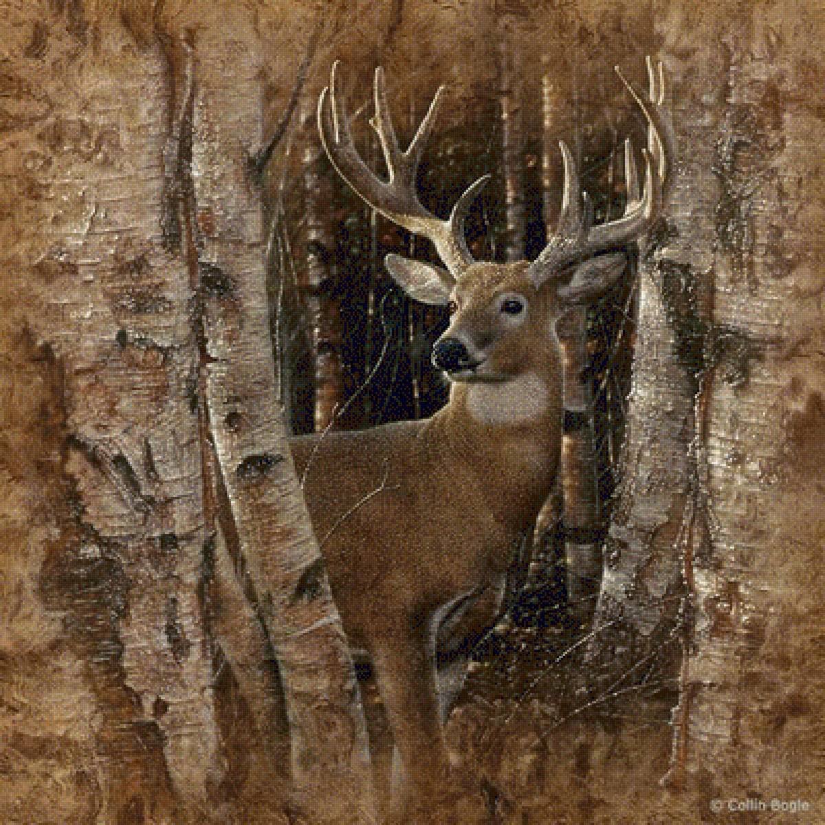 Картина олень в лесу