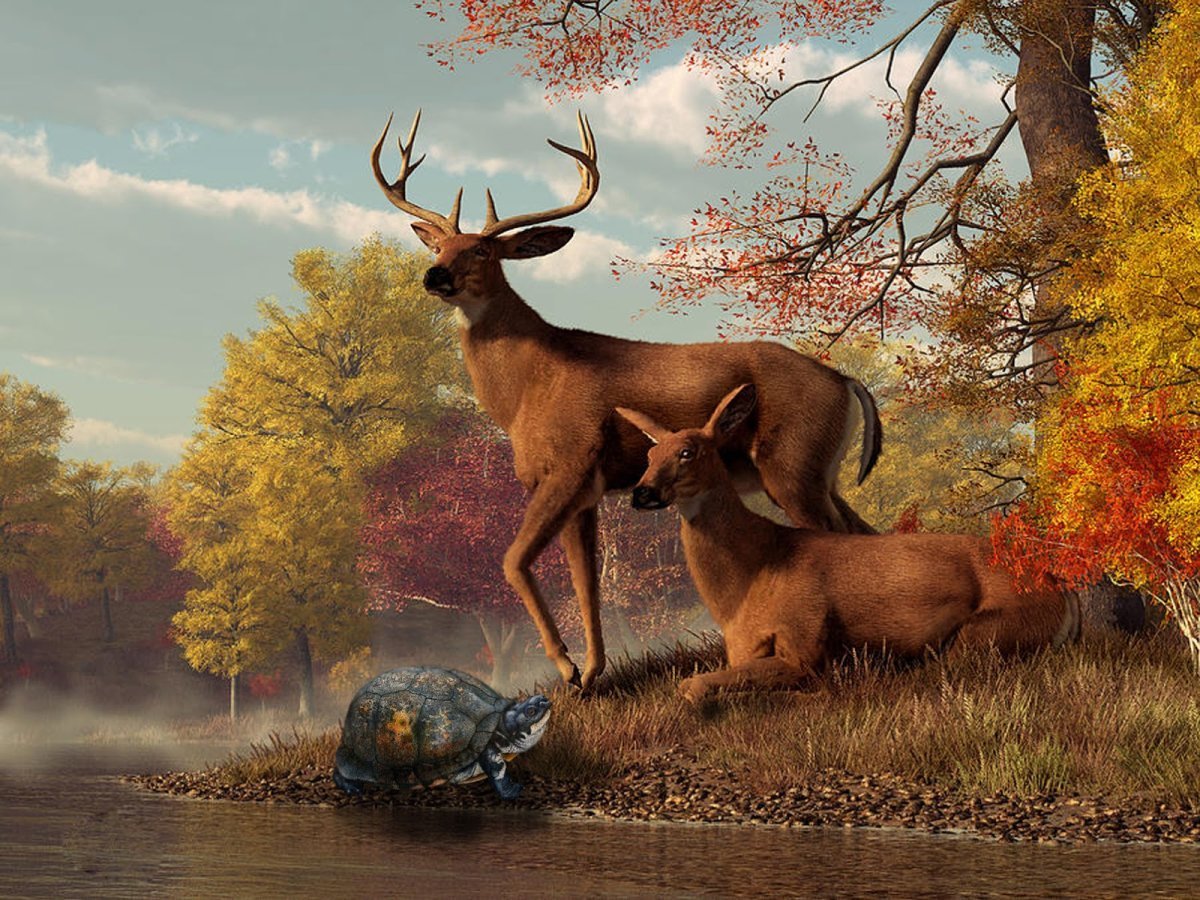Осенний пейзаж с оленем