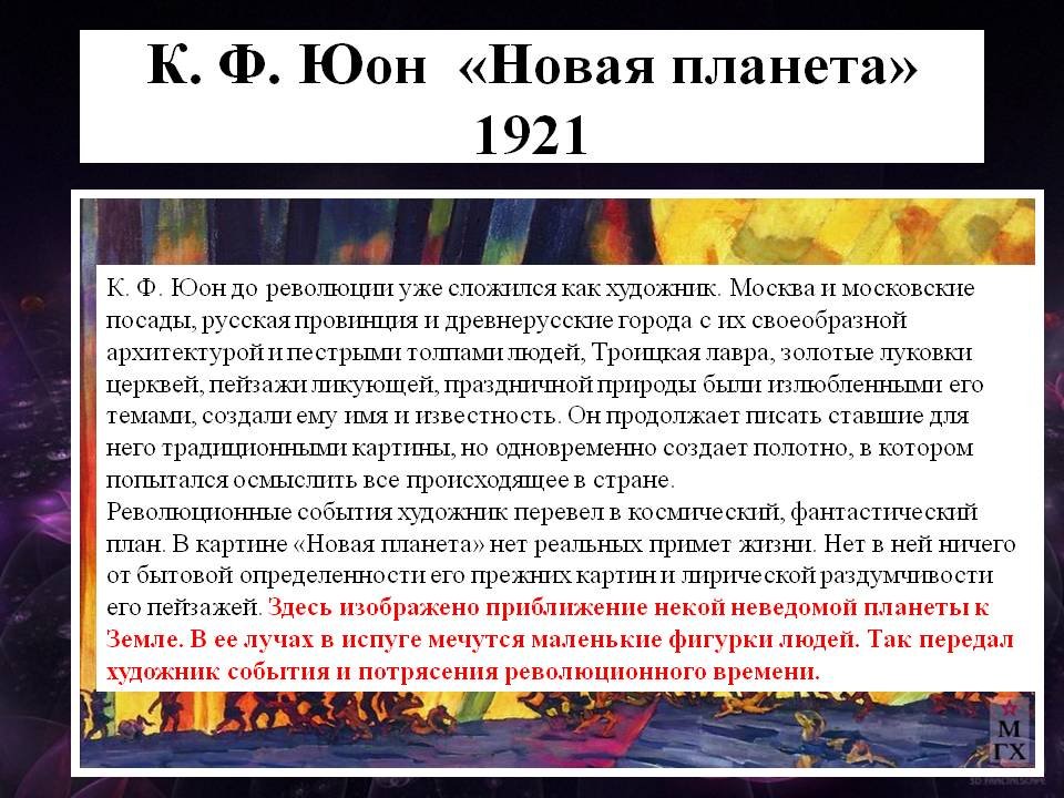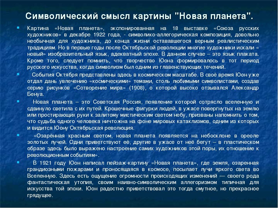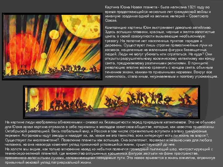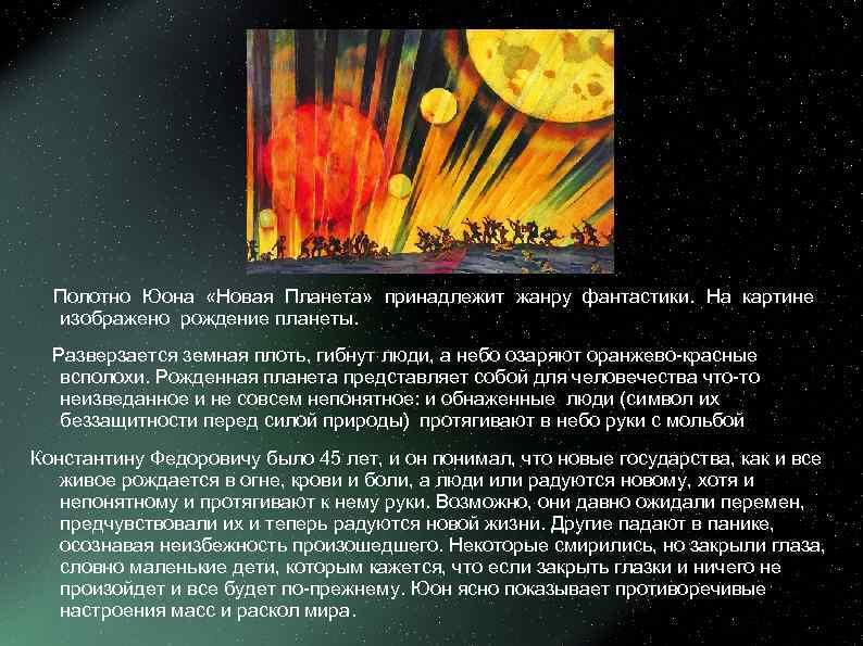 "Новая планета" - это захватывающая и загадочная картина, созданная талантливым художником Юоном. В этой работе он приглашает зрителя в удивительное путешествие в неизведанные миры. Картина полна ярких и насыщенных цветов, которые оживляют новый мир, разбуждают фантазию и возникает ощущение, что перед нами открывается совершенно другая реальность. Невероятные пейзажи и странные формы создают впечатление, будто мы попали на другую планету, где правят свои законы и правила. "Новая планета" - это произведение искусства, которое притягивает взгляды, вызывает интерес и заставляет задуматься о бесконечных возможностях космоса и фантастических миров, которые может обрести человечество.