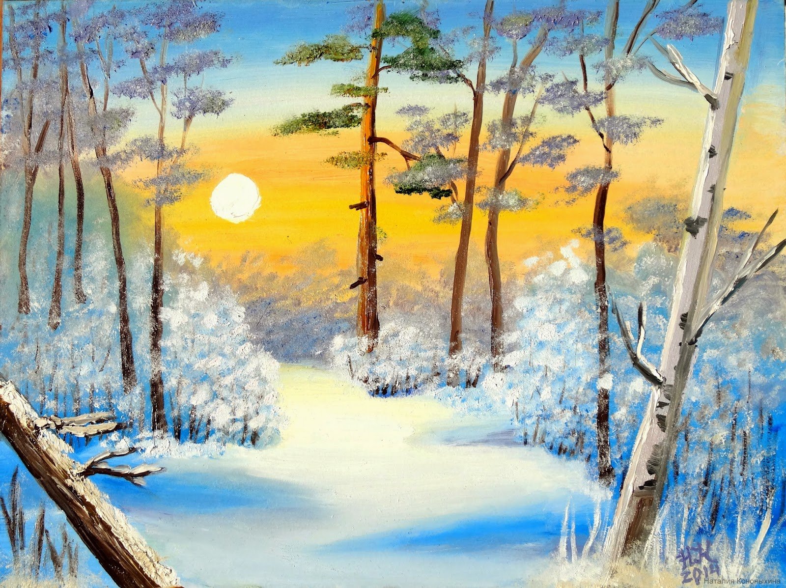 СкачатьЗимний пейзаж красками