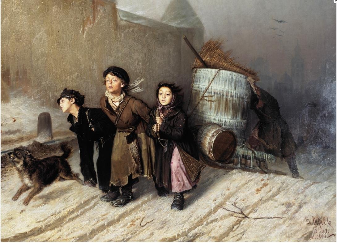 Василий Перов. Тройка. Ученики-мастеровые везут воду. 1866