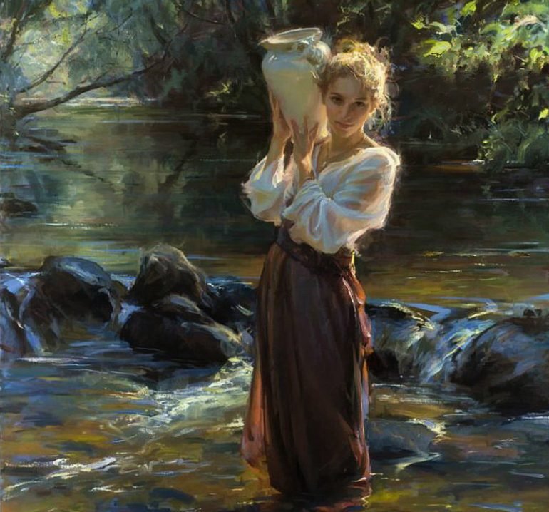 СкачатьХудожник Vicente Romero Redondo девушка с кувшином