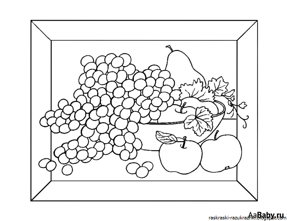 Натюрморт с фруктами раскраска