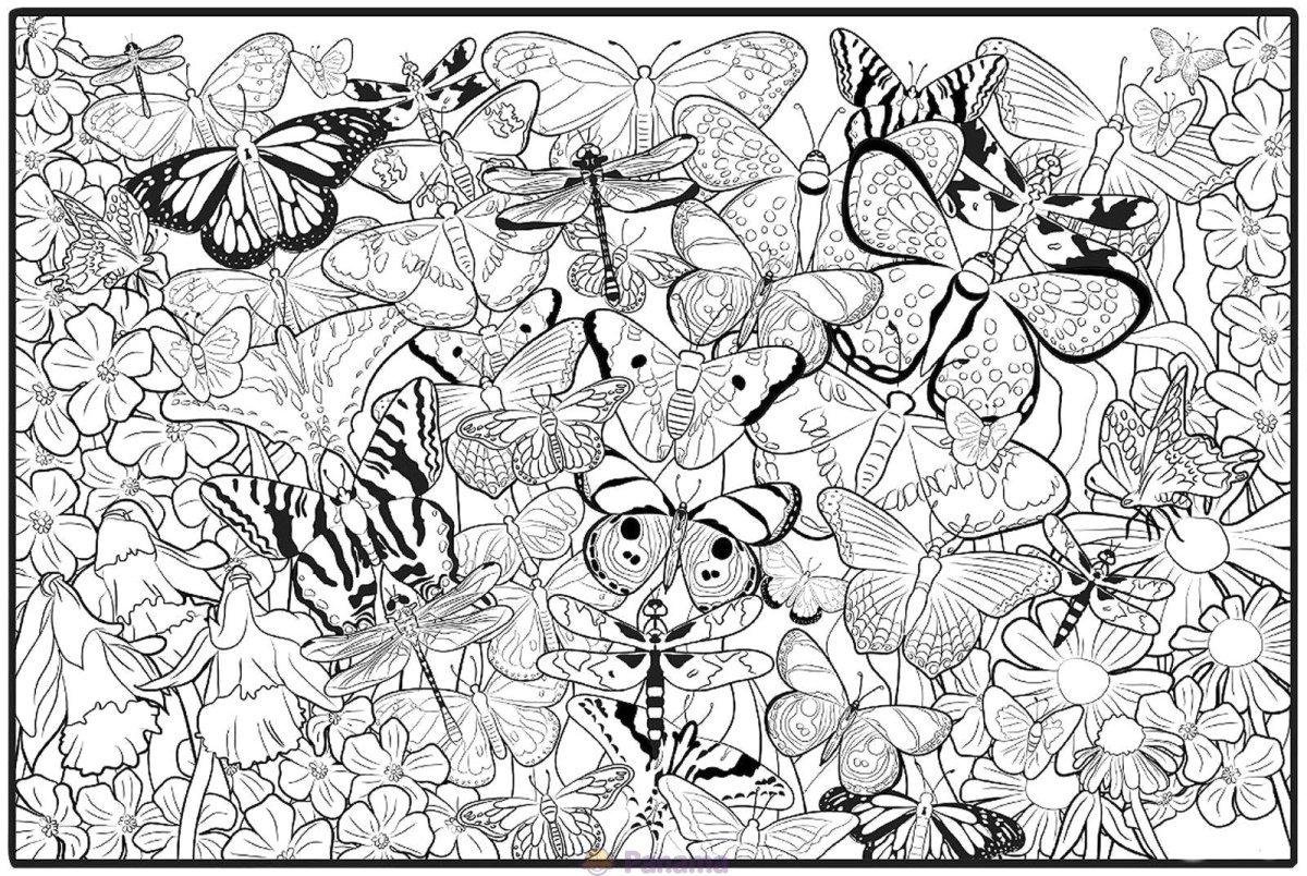 Цветы и бабочки. Раскраска