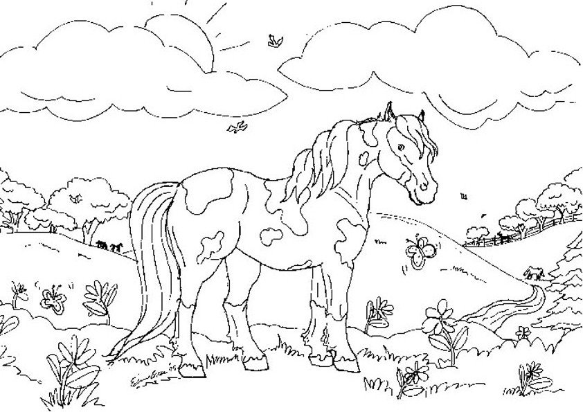 Лошади на лугу раскраска