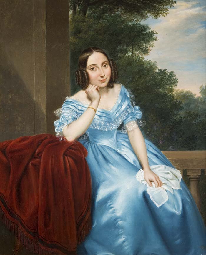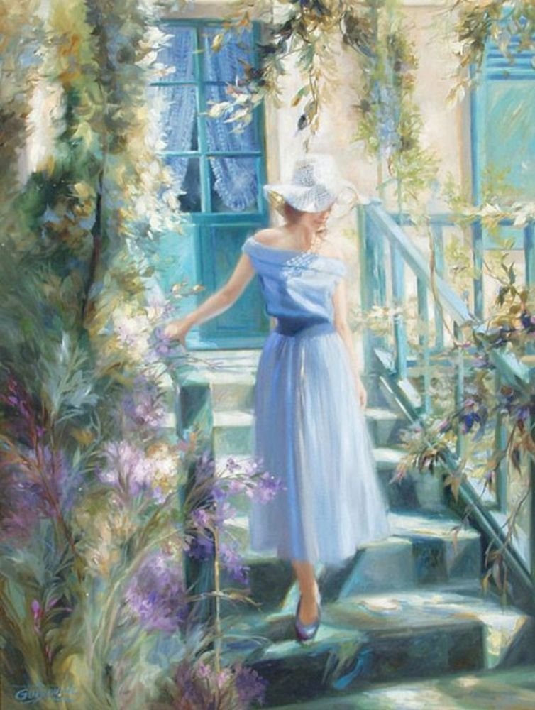 Девушка в голубом платье живопись