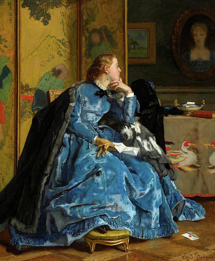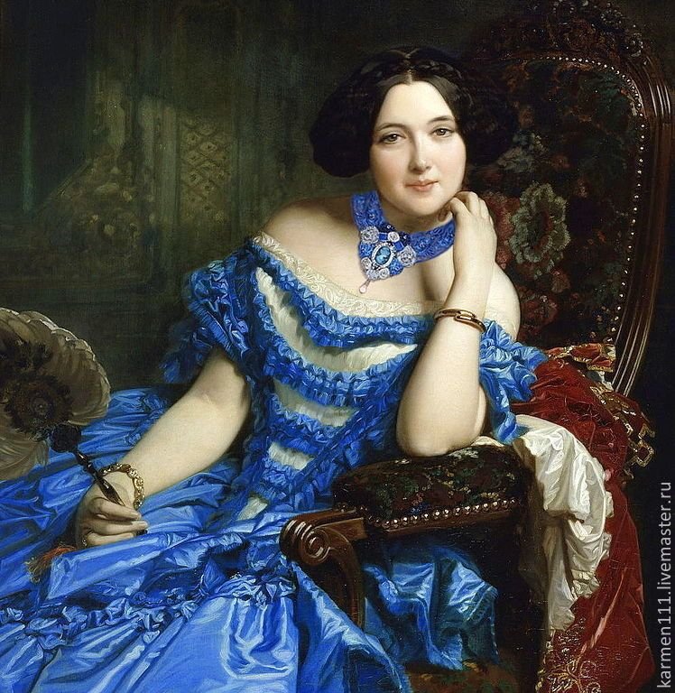 Дама в синем платье картина