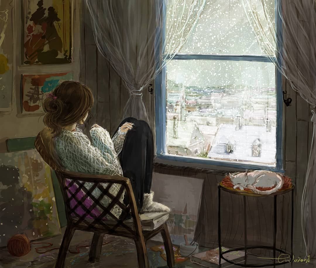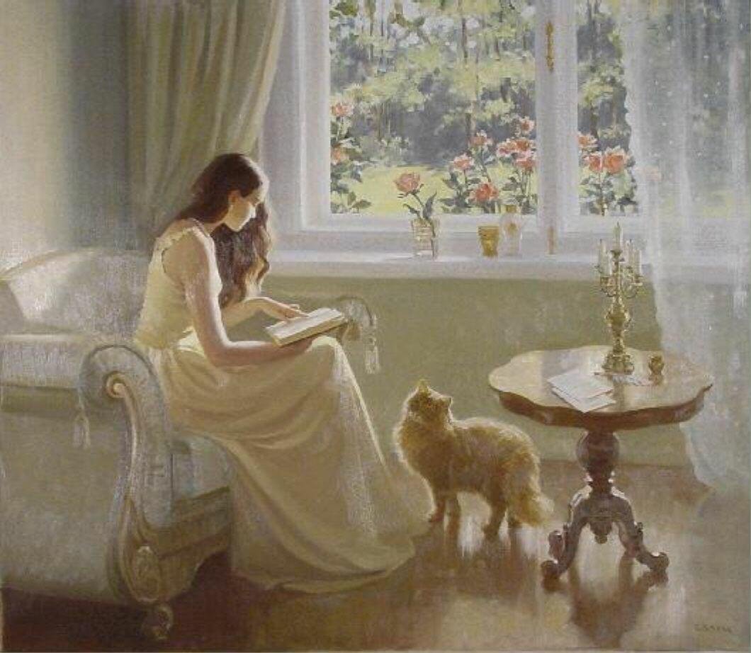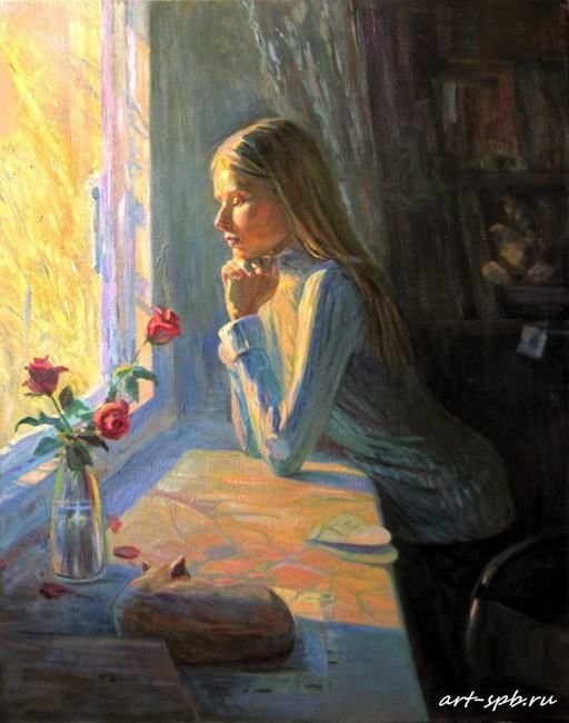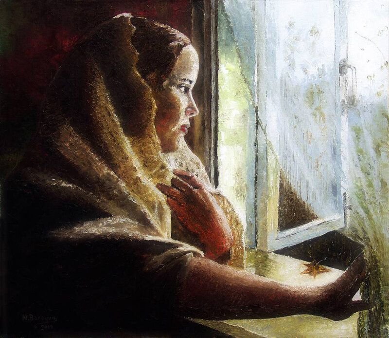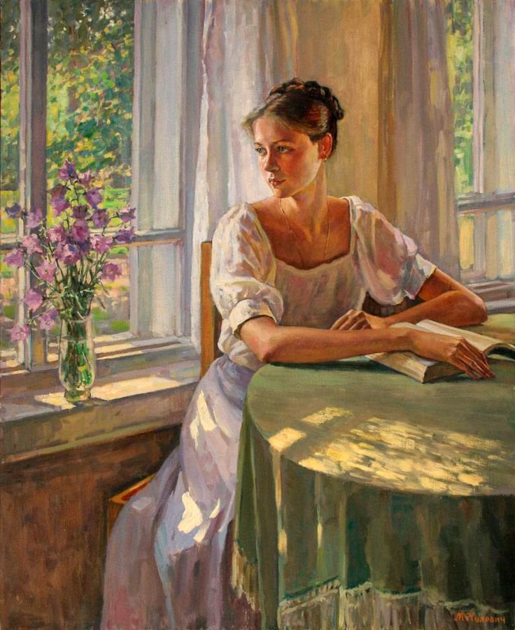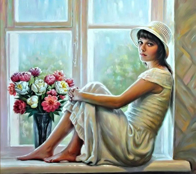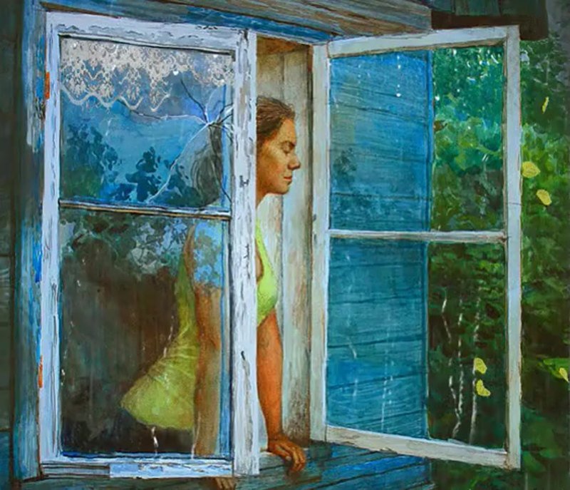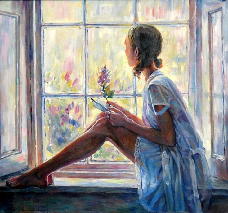 У окна картины художников