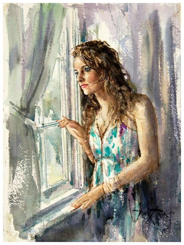 Женщина у окна живопись