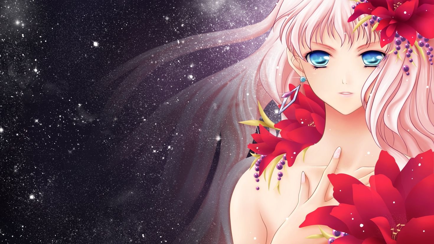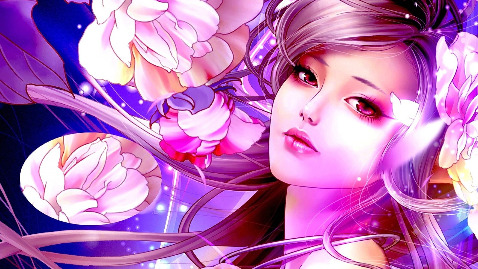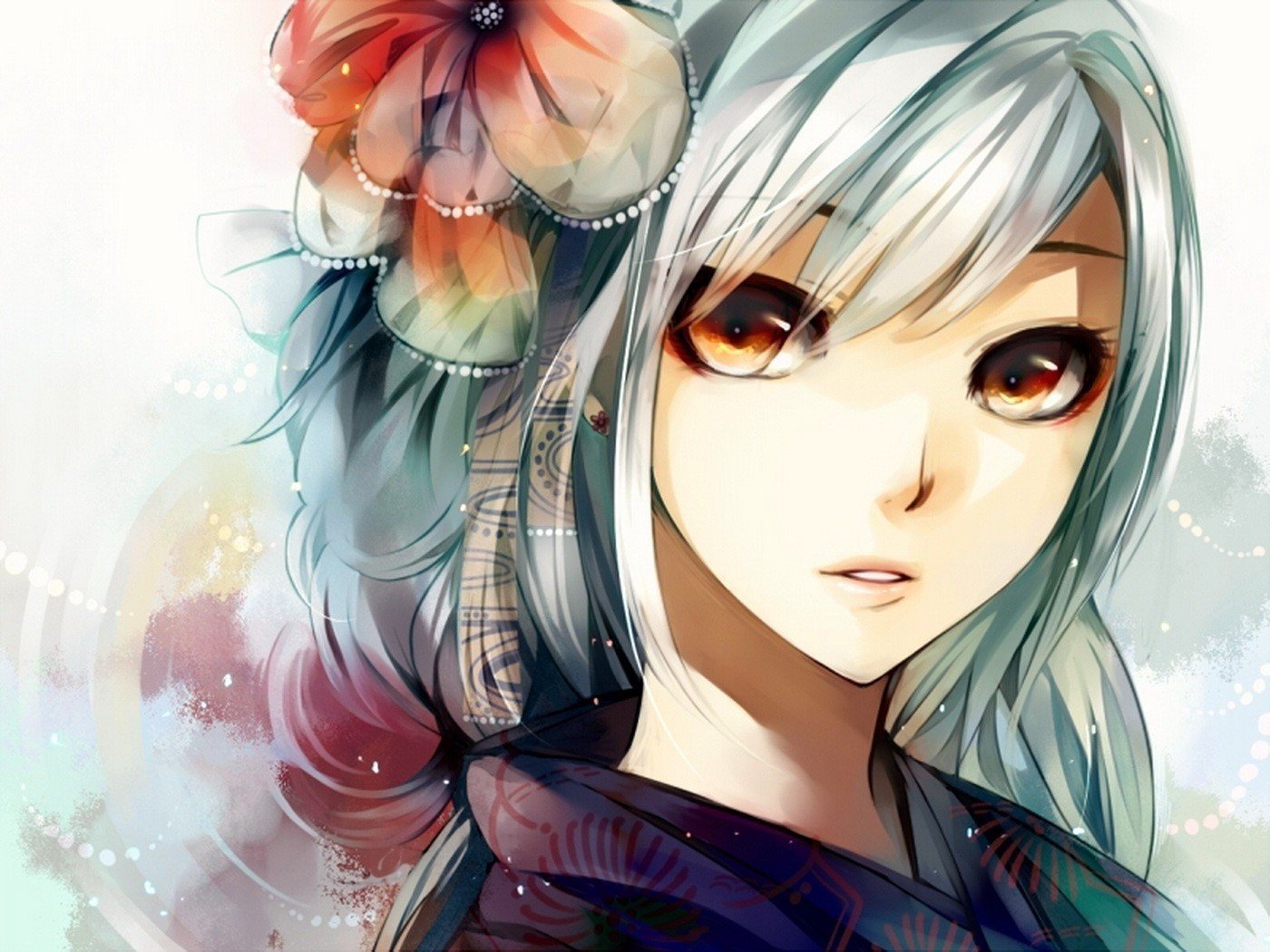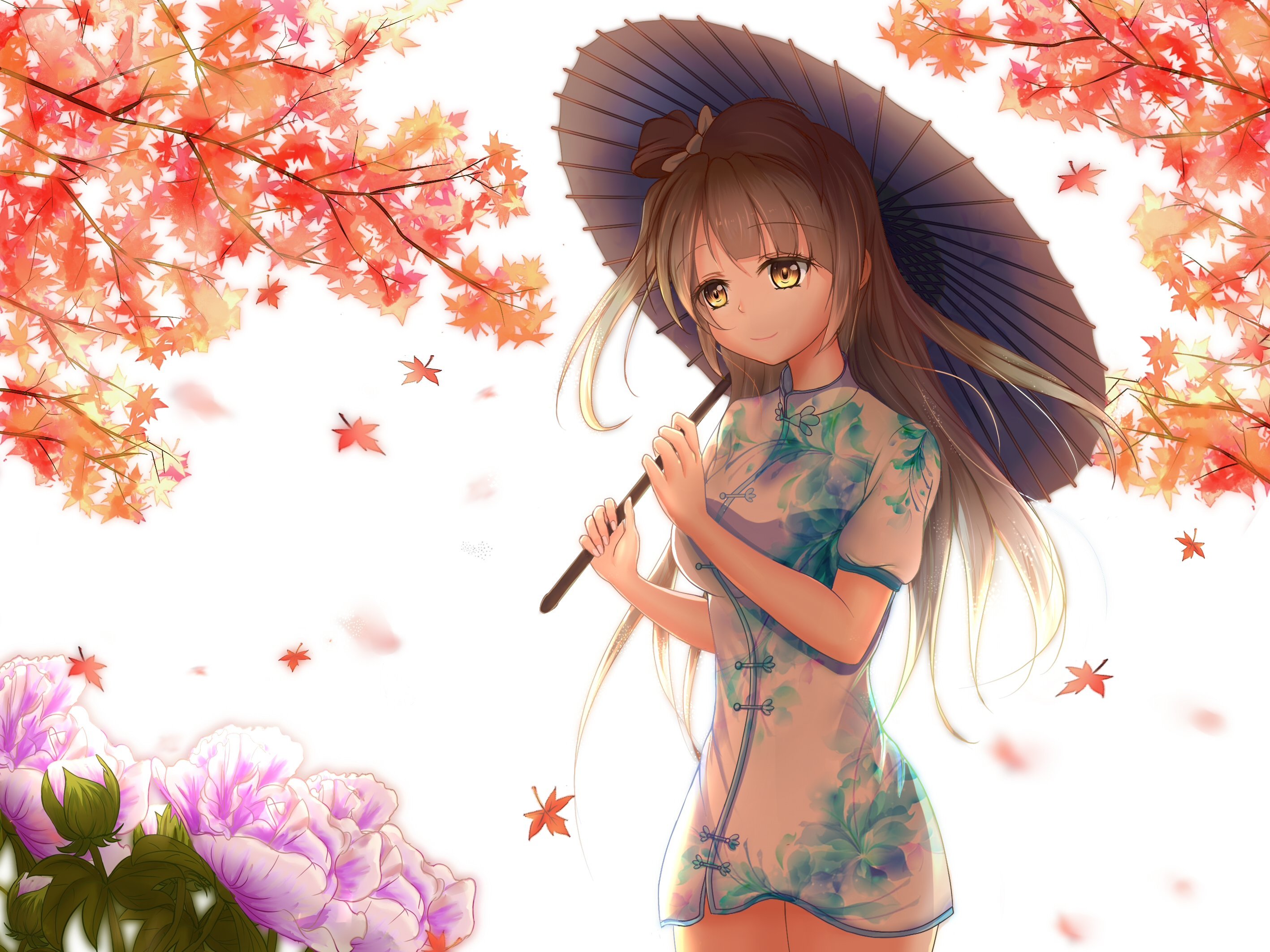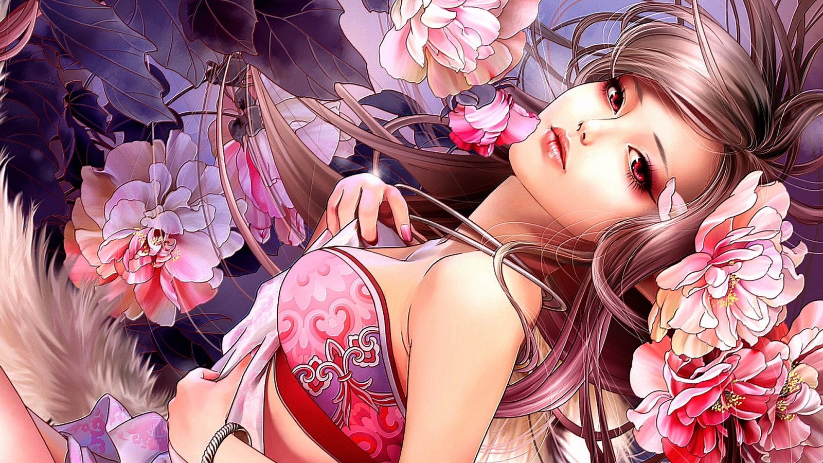 Аниме девушка цветы