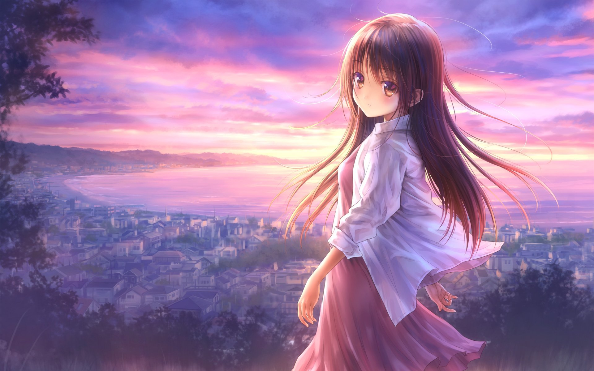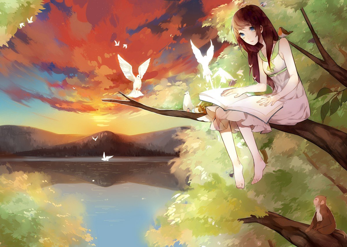 Аниме девушка природа